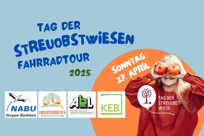 „Tag der Streuobstwiesen“-Fahrradtour 2026 Seit 2020 finden zum Internationalen Tag der Streuobstwiesen bundesweit Aktionen und Veranstaltungen statt, um das Weltkulturerbe Streuobstwiesen zu feiern und zu unterstützen. https://orchardseverywhere.com/de/ Am 26. April laden die Fruchtschnitten mit dem NABU Barleben wieder zu einer Fahrradtour ein, um diesmal die große Streuobstwiese in der Kreuzhorst und weitere Stationen zu besuchen.…